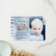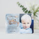 Carte de remerciement mignonne de la part du garçon qui fête son anniversaire ! Le design présente un fond de ciel bleu à l'aquarelle avec de petites étoiles et des nuages duveteux, un petit garçon pilotant un avion vintage, des ballons à air chaud, une photo de votre choix et un modèle de remerciement facile à personnaliser.