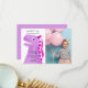 Carte de remerciement drôle et mignonne pour l'anniversaire de votre enfant sur le thème des dinosaures. Illustration de style cartoon d'un dinosaure rose. Le T-Rex porte un petit chapeau de princesse rose. Au-dessus du T-Rex, il est écrit "Merci d'être passé". Sur le corps du dinosaure, un message remercie l'invité d'être venu et pour les cadeaux. Ajoutez le nom de votre enfant en bas. Le texte est facilement modifiable en ligne. Vous pouvez personnaliser davantage ce produit en ajoutant la photo de votre enfant.