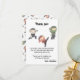 Créez une fête d'anniversaire mémorable et amusante pour le mignon petit ninja dans votre vie. Cette carte de remerciement pour fête d'anniversaire facilement personnalisable fait partie d'un ensemble assorti d'accessoires pour fête d'anniversaire. Vous pouvez organiser la meilleure fête d'anniversaire sur le thème ninja pour votre petit amateur d'arts martiaux. Ajoutez simplement vos propres détails pour personnaliser, et n'oubliez pas les assiettes, les gobelets, les serviettes et tous les essentiels pour la fête. Ce design présente de petits ninjas aquarelles adorables en vert, bleu, orange, gris, noir et blanc.