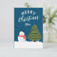 Joyeux bonhomme de neige de Noël beau bleu marine maintenant carte de remerciements.