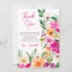 Exprimez votre gratitude avec cette illustration élégante de fleurs de printemps et d'été modernes, lumineuses et audacieuses, avec de jolies fleurs sauvages surdimensionnées et une carte de remerciement de baby shower avec une typographie calligraphique moderne avec des fleurs néon lumineuses rose, orange, vert et jaune.
