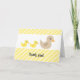 Une adorable et ludique invitation au baby shower avec une arrière - plan rayée jaune et blanc, avec une mère canard ses canards jumeaux.