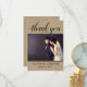 Papier kraft rustique moderne et chic et mariage noir plat, notes de remerciement comprennent une photo de la mariée et du marié à l'avant et au dos accentué d'un design typographique noir élégant, avec des accents de script de calligraphie audacieux et un texte personnalisé élégant qui peut être personnalisé avec un message de remerciement spécial.