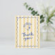 Cette carte de remerciement est parfaite pour une fête de mariage avec un thème italien. Elle comporte un fond rayé jaune, une bordure ondulée, une illustration de citron dessinée à la main et "merci" dans une police de caractères en écriture gribouillée. Le verso de la carte est modifiable avec votre propre message.