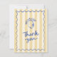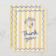Cette carte de remerciement est parfaite pour une réception de mariage avec un thème italien. Elle présente un fond rayé jaune, une bordure gribouillée, une illustration de citron dessinée à la main et "merci" dans une police de caractères gribouillée. Le verso de la carte est personnalisable avec votre propre message.