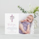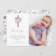 Carte De Remerciements La violette rougissent baptême de photo de croix