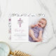 Ces le beau baptême floral vous remercient carde la caractéristique qu'une croix mauve-clair avec l'aquarelle rougissent, les fleurs mauve-clair et et blanches, et la photo de votre bébé.