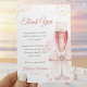 Exprimez votre gratitude avec style avec cette carte de remerciement de lancement de fiançailles Perles & Prosecco. Avec un verre à champagne à l'aquarelle, des tons rose blush, des perles et des paillettes dorées, elle se marie parfaitement avec l'invitation correspondante. Idéal pour les brunchs de fiançailles modernes et les lancements de mariage élégants. Personnalisez avec votre nom et date.