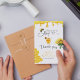 Carte de remerciement élégante et tendance sur le thème de l'abeille à miel jaune, avec aquarelle jaune, abeilles, rayons de miel et fleurs de tournesol. Vous pouvez trouver des produits assortis dans la collection.