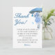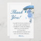 Ce carte de remerciements de baby shower "Blue April Showers Bring May Flowers" présente un design bleu doux avec des fleurs délicates dans les tons bleus, Un charmant parapluie bleu à fleurs ajoute une touche de fantaisie Parfait pour exprimer la gratitude aux clients avec une touche sereine et saisonnière.