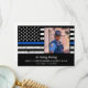 Ligne Bleue Mince Police Américaine Drapeau Carte de remerciements funéraire Memorial. Cette carte de remerciements funéraire de la police est ornée d'un drapeau de la police de la Ligne Bleue Mince sur un arrière - plan noir. "In Loving Memory" Personnalisez ce carte de remerciements de police avec vos proches photo, nom & dates, message personnel et nom au dos. Ce carte de remerciements funéraire photo de l'officier de police sera un souvenir précieux. Parfait pour les funérailles de la police, le service commémoratif de la police ou la célébration de la vie. Dans Loving Memory Police Mémorial Mince Ligne Bleue Drapeau. DROIT D'AUTEUR © 2020 Judy Burrows, Black Dog Art - Tous droits réservés. Ligne Bleue Mince Sympathy Police Memorial Funeral Carte de remerciements