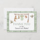his charming hunting-themed thank you card is a thoughtful way to express your appreciation after a rustic or woodland baby shower. Featuring soft watercolor illustrations, gentle green tones, and a classic gingham border, it beautifully complements a hunting or outdoor-inspired celebration.