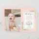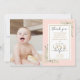 Un joli carte photo de 1er anniversaire merci avec des feuilles de verdure aquarelle sur un arrière - plan rose. Personnalisez avec la photo de la fille d'anniversaire et un message de remerciement spécial d'anniversaire dans la typographie chic. Une manière parfaite de dire merci à la petite Miss ONEderful ! Conçu par Thisisnotme©