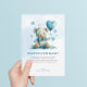 Ce baby shower mignon, des livres pour le design de bébé, présente un adorable ours en peluche aquarelle avec des ballons en forme de coeur et une typographie personnalisable bleue et noire.