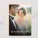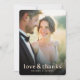 This elegant wedding thank you card features a soft, romantic photo design with warm lighting that evokes a sense of joy and celebration. The layout is simple yet sophisticated, focusing on the heartfelt message at the bottom in an understated font style. The color palette includes gentle hues that complement the natural tones of the photograph, creating a harmonious and inviting feel. Perfect for expressing gratitude after a special occasion, this design captures the essence of love and appreciation, making it ideal for newlyweds to share their thanks with loved ones.