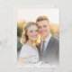 This elegant wedding thank you card features a warm, sunlit photo that exudes joy and love. The design is complemented by sophisticated typography with a handwritten flourish, adding a personal touch to the sentiment. With its soft color palette of gentle golds and whites, it captures a romantic and heartfelt mood perfect for expressing gratitude after your special day. Ideal for newlyweds looking to convey appreciation in style, this card seamlessly blends timeless elegance with modern charm.