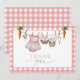 Show your appreciation in the sweetest way with this “Locally Grown” baby shower thank you card. Designed with a soft pink gingham background and delicate watercolor florals, vegetables, and greenery, this card perfectly complements a rustic garden or farmhouse baby girl shower theme.