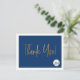 Personnalisez ce modèle simple et facile d'utilisation de carte grise plate avec le logo, le site Web, le message, le nom commercial, le site Web et la poignée de médias sociaux de votre entreprise (supprimez toutes les icônes qui ne s'appliquent pas en utilisant le bouton "customiser plus loin"). Faites savoir à vos clients, clients, clients que vous êtes reconnaissants de leur soutien, personnalisez le message de remerciement au besoin. Typographie simple, chic, moderne en faux tirage d'or sur Blue. Conseil : Utilisez la version blanche de votre logo enregistré en tant que PNG sur un arrière - plan transparent.