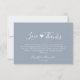 Cette belle et moderne carte de remerciements mariage présente les mots "Amour et Merci" dans un élégant script écrit à la main avec une illustration cardiaque, dressé contre un arrière - plan bleu poussiéreux doux. Le dos comprend l'espace pour une photo mariage complète pour présenter votre journée spéciale. Personnalisez facilement vos noms, messages et photos. Vous préférez écrire votre note à la main ? Supprimez simplement l'exemple de texte pour le laisser vide. Vous recherchez des éléments correspondants ou avez besoin d'aide pour la personnalisation ? N’hésitez pas à me contacter - Je suis heureux de vous aider!