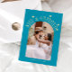 Simple and minimalistic wedding thank you card featuring your wedding photo with an arch frame with texts around that says "love & gratitude" and the couple's names and the wedding date. Message on the back of the card is editable and another picture can be added as well. This 2-sided thank you card is so timelessly stylish. The background is aqua blue.