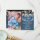 Personnalisez avec votre photo et votre message de baptême spécial, remerciement de christening dans un lettrage chic sur ce design rustique élégant avec de jolies guirlandes lumineuses et une guirlande de feuillage dessiné à la main sur un fond de panneaux de bois bleus. Conçu par Thisisnotme©