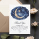 Élevez votre fête de mariage avec notre carte de remerciement enchantée Moon & Stars Thème Céleste pour la fête de mariage. Avec une lune peinte en or et des étoiles sur un fond bleu marine foncé représentant le ciel nocturne, cette carte dégage le charme céleste et le mystère d'une nuit étoilée. Parfaite pour les mariées qui recherchent une fête de mariage sur le thème céleste ou féerique, cette carte prépare le terrain pour un événement magique et inoubliable.
