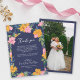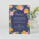 Carte De Remerciements Lush Pink Yellow Flowers Dark Blue Wedding Photo