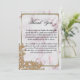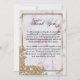 Vous pouvez témoigner votre reconnaissance et remercier votre famille et vos amis pour leur soutien et leur amour le jour de votre mariage avec cette élégante perles d'or et carte de remerciements en marbre rose. Le design se compose d'une motif en marbre rose classique et élégante, encadrée d'une bordure métallique dorée avec des perles dans les coins. Un coin dentelle décoratif de fleurs et de pétales est également encastré dans le fond avec de minuscules perles.