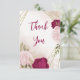 Carte De Remerciements magenta fleurs roses vert feuille mariage