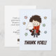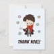 Envoyez une note de gratitude magique avec ce charmant carte de remerciements thématique Harry Potter. Sur le devant de la carte se trouve une illustration chicbi attachante d'Harry Potter, avec ses lunettes emblématiques et son foulard Gryffindor, tenant son fidèle hibou enneigé, Hedwig. Des étoiles de couleur blanche (rose, jaune, vert, bleu) sont dispersées autour des personnages, apportant une touche ludique. Sous l'illustration, le texte en gras "MERCI !" exprime clairement votre appréciation. Cette carte est parfaite pour exprimer des remerciements après une fête sur le thème de l'assistant, un cadeau spécial, ou toute occasion où un message personnel et enchanteur est nécessaire.