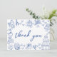 Carte de remerciement de mariage bleue et blanche inspirée de l'Europe, dessinée à la main et fantaisiste.