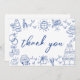Carte de remerciement de mariage fantaisiste bleue et blanche inspirée de l'Europe et dessinée à la main.