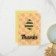 Voici une carte de remerciement charmante "Thank You Card", parfaite pour exprimer votre gratitude avec style et charme. Cette carte délicieuse présente un design fantaisiste d'une abeille maman enceinte ornée de lèvres pulpeuses, de cils frémissants et d'antennes étoilées, bourdonnant de joie au-dessus d'un bouquet vibrant de fleurs orange.