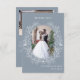 Prenez le charme durable avec notre mariage bohème classique sophistiqué merci cartes photos. Présentez des instantanés enchanteurs des jeunes mariés sur fond de délicate couronne florale bleu poussiéreuse. Ces cartes exsument la grâce et le style, encapsulant magnifiquement l'essence de votre journée spéciale.