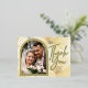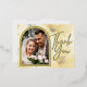 Cette aquarelle au beurre très pâle jaune et bleu doux est un thème romantique et élégant pour vos fournitures de mariage stationnaire et de fête. Les fleurs d'aquarelle jaune sont douces et élégantes. Ce remerciement en feuille d'or a de l'espace pour vos noms, votre propre message de remerciement et une photo du couple mariage. Le carte de remerciements fait partie d'une gamme d'accessoires de mariage fixes et de fête coordonnés pour faciliter la préparation de votre mariage