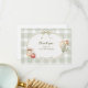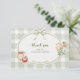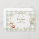 Carte de remerciement à motif gingham aquarelle verte avec un design à cadre ovale orné d'un joli ruban vert, un bouquet de fleurs sauvages, un pot de miel et une pomme. Parfait pour un thème de mariage 'Fraîchement vendu' ou champêtre.