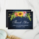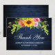 Carte de Remerciement Mariage Champêtre Bleu Bois Aquarelle Tournesol Fleurs avec Roses, Pivoines et Feuillage
