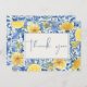Cette conception florale à l'aquarelle présente un arrangement floral élégant à l'aquarelle avec des fleurs bleues et jaunes et un motif italien de couleur bleue et blanche à l'arrière. Une collection de cartes de remerciement de douche de mariage bleue moderne élégante parfaite dans le thème elle a trouvé son thème principal. Envoyez-moi un message pour toute aide ou commande personnalisée.