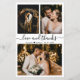 Budget, Moderne, Élégant, Lettering Mariage Trois Photo Collage Merci personnalisé abordable carte mince à petit budget. Modèle minimaliste mariage avec trois photos sur le devant et une photo sur le dos. Avec le texte "Amour et merci" dans une tourbillonnant police de script de calligraphie avec des swashes en noir sur arrière - plan blanc. Petit coeur entre les noms. ***VEUILLEZ NOTER! *** LE DOCUMENT BUDGÉTAIRE/VOL EST EN PAPIER MINCE. *** METTRE À JOUR LE PAPIER POUR UN PAPIER PLUS ÉPAIS. *** Carte postale : https://www.zazzle.com/wedding_photo_collage_love_and_thanks_thank_you_postcard-256313964226193537 Cartes traditionnelles avec enveloppes : https://www.zazzle.com/love_and_thanks_script_wedding_photo_thank_you_card-256632561302382055 https://www.zazzle.com/elegant_typography_photo_collage_wedding_thank_you_card-256107482383952405 Personnalisez votre nom personnalisé et message de remerciement. Si vous préférez écrire votre note à la main, supprimez simplement l'exemple de texte pour gagner de l'espace. Si vous avez besoin d'aide ou de l'article correspondant, veuillez me contacter !