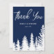 Un carte de remerciements marin avec pins, des touches de neige douce et des polices élégantes, créant un design de forêt d'hiver cosy et sophistiqué, parfait pour exprimer sa gratitude après un mariage d'hiver.
