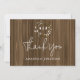 Carte de remerciements de Monogramme en bois rustique Ce carte de remerciements élégant et élégant est orné d'une couronne de feuilles d'or et de blanc boho sur un arrière - plan en bois rustique aux lettres blanches. Une façon élégante, moderne et chic de remercier vos invités pour la célébration de votre événement spécial avec vous.