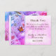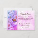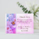 Après le mariage merci petite carte à plat avec un message pour l'invité. Bel design avec un papillon orange touchant perles de perles blanches en forme de coeur. Un autre papillon se fond dans le bouquet de roses roses, violets et bleus. Image papier parchemin. Convertissez ceci pour n'importe quelle occasion. Ajoutez une photo et/ou modifiez le texte.