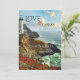 Carte de remerciements mariage avec une peinture d'un phare sur une côte rocheuse aux couleurs vives. Belle après un mariage nautique, de destination ou de plage.