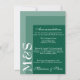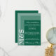 Carte d'enceinte mariage simple et chic pour les hébergements, mariées qui ornent leurs cérémonies dans un style moderne et couleur vert émeraude. La suite mariage chic a une police blanche moderne avec des initiales monogramme sur le côté.