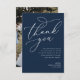 carte de remerciements mariage personnalisé avec élégant script blanc et un message de remerciement personnalisé à vos invités.