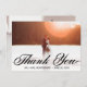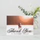 Envoyez une carte de remerciement de mariage personnalisée et élégante à votre famille et à vos amis. Ce modèle élégant présente votre photo sur le devant avec un texte superposé dans un script classique qui dit "Merci" avec votre nom et votre date pour personnaliser. C'était une joie de créer pour vous. Meilleurs vœux pour votre mariage ! Conçu par l'artiste Susan Coffey.