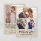 Partagez votre gratitude avec style grâce à cette élégante carte de remerciement de mariage multi-photos qui présente un fond à texture de lin doux et une typographie serif intemporelle. Avec un espace pour trois portraits de mariage préférés sur le devant, ainsi qu'une photo et un message sincère au dos, cette carte est conçue pour compléter magnifiquement n'importe quel thème de mariage - du rustique au moderne. Personnalisez avec vos noms, photos et note pour créer un souvenir que vos invités chériront.