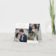 Cette carte de remerciement de mariage pliée de Noël dorée délicate est la parfaite salutation de fêtes moderne pour les jeunes mariés. Le design romantique minimaliste présente une typographie élégante et charmante de couleur jaune doré champagne sur fond blanc avec un look propre et simple. Personnalisez la carte avec 3 photos, vos noms et l'année. Écrivez votre message de remerciement à l'intérieur de la carte.