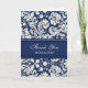 Carte de remerciement pour les parents de la mariée ou du marié le jour de votre mariage. Élégant et stylé avec un motif de damas floral classique vintage dans un bleu sophistiqué et un blanc crème, la façon parfaite de remercier vos parents pour tout leur soutien le jour de votre mariage.