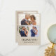 Partagez votre gratitude avec style grâce à cette élégante carte de remerciement de mariage multi-photos qui présente un fond à texture de lin doux et une typographie serif intemporelle. Avec un espace pour trois portraits de mariage préférés sur le devant, ainsi qu'une photo et un message sincère au dos, cette carte est conçue pour compléter magnifiquement n'importe quel thème de mariage - du rustique au moderne. Personnalisez avec vos noms, photos et note pour créer un souvenir que vos invités chériront.